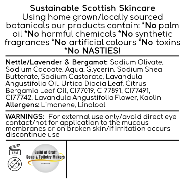 Bring balance back to your skin with our Nourishing Nettle Soap – a gentle, skin-loving bar infused with homegrown nettle, soothing lavender, and bright bergamot essential oils. Nettle is known for its calming and anti-inflammatory benefits, making this bar ideal for sensitive or irritated skin.